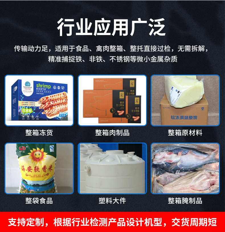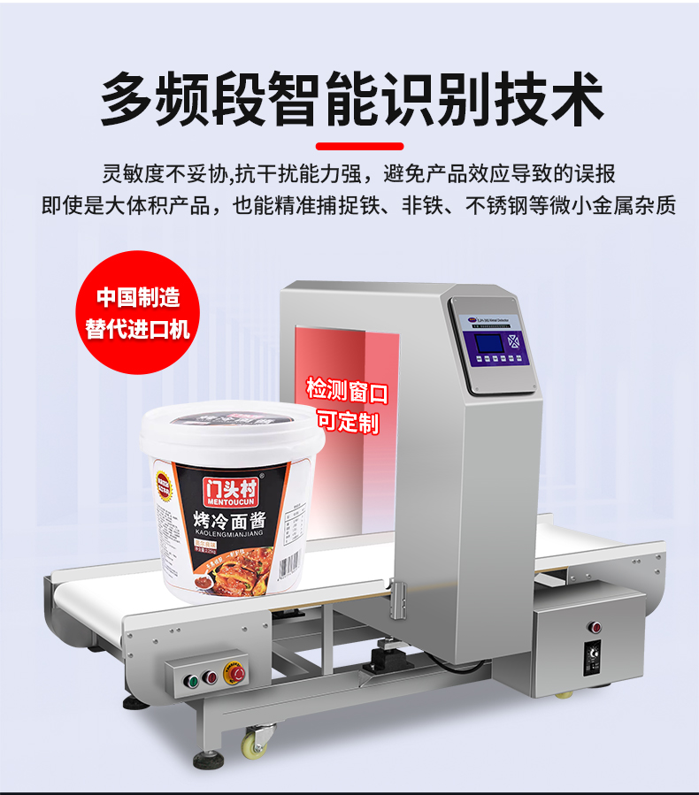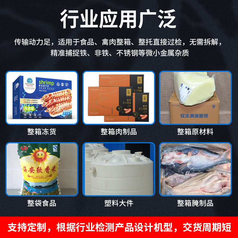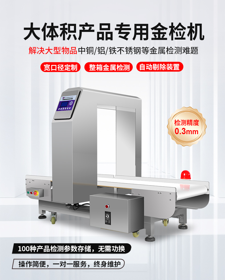 大檢測窗口的金檢機(金屬檢測機)因其寬口徑、高承重和強抗干擾能力,特別適合需要檢測大體積、重型或整箱/整托產(chǎn)品的行業(yè),整箱飲料、袋裝面粉/大米、冷凍肉制品、桶裝食用油等。自動記憶產(chǎn)品特性,切換品類無需重新調(diào)試,每臺設(shè)備附帶金屬樣本測試包