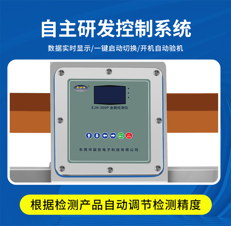 安護神EJH-360金屬檢測機采用先進的雙信號(磁感+電導(dǎo))或多頻技術(shù),精準(zhǔn)檢測鐵、非鐵(如銅、鋁、不銹鋼)等各類金屬異物,靈敏度可達Fe 0.3mm, SUS 0.5mm (具體數(shù)值根據(jù)產(chǎn)品實際性能填寫),有效杜絕漏檢。獨特算法和屏蔽設(shè)計,有效抵抗產(chǎn)品效應(yīng)(濕、鹽、酸等)和環(huán)境干擾(振動、溫度波動),大幅降低誤報率,保障生產(chǎn)流暢性。配備氣動翻板、推桿、吹氣等多種快速響應(yīng)剔除機構(gòu),確保檢測到的含金屬產(chǎn)品被有效隔離,不影響合格品通過。 適用于肉禽水產(chǎn)加工、烘焙與糖果、乳制品、休閑零食、調(diào)味品與醬料、速凍食品、寵物食品、包裝材料進料檢測等行業(yè)