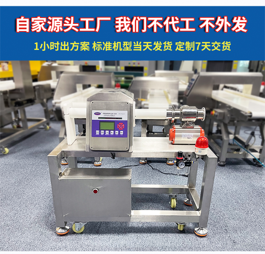 液體產(chǎn)品在生產(chǎn)過(guò)程中,可能會(huì)混入金屬屑、焊渣、設(shè)備磨損顆粒等金屬異物,不僅影響產(chǎn)品質(zhì)量,還可能對(duì)消費(fèi)者健康造成威脅。傳統(tǒng)金屬檢測(cè)設(shè)備難以應(yīng)對(duì)液體產(chǎn)品的流動(dòng)性和導(dǎo)電性,檢測(cè)效果不佳。安護(hù)神液體金屬檢測(cè)機(jī),專為液態(tài)產(chǎn)品設(shè)計(jì),采用先進(jìn)的數(shù)字信號(hào)處理技術(shù)和智能化算法,精準(zhǔn)識(shí)別鐵、不銹鋼、銅、鋁等金屬異物,有效克服液體流動(dòng)性和導(dǎo)電性帶來(lái)的干擾,可檢測(cè)微小金屬異物,靈敏度高達(dá)0.3mm
