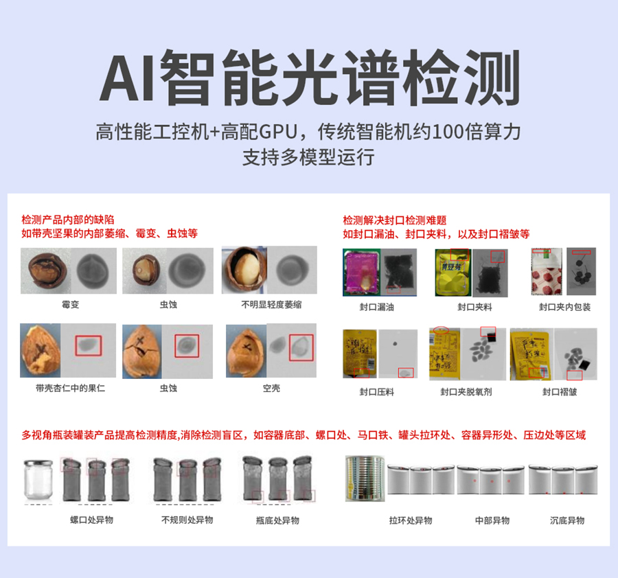 食品X光異物檢測(cè)機(jī),檢測(cè)碎骨、金屬碎片、魚刺、魚鉤、貝殼碎片、檢測(cè)石子、玻璃、塑料、金屬等異物,高效自動(dòng)檢測(cè),降低人工成本,高精度、高速度,適用于肉類/水產(chǎn)/零食