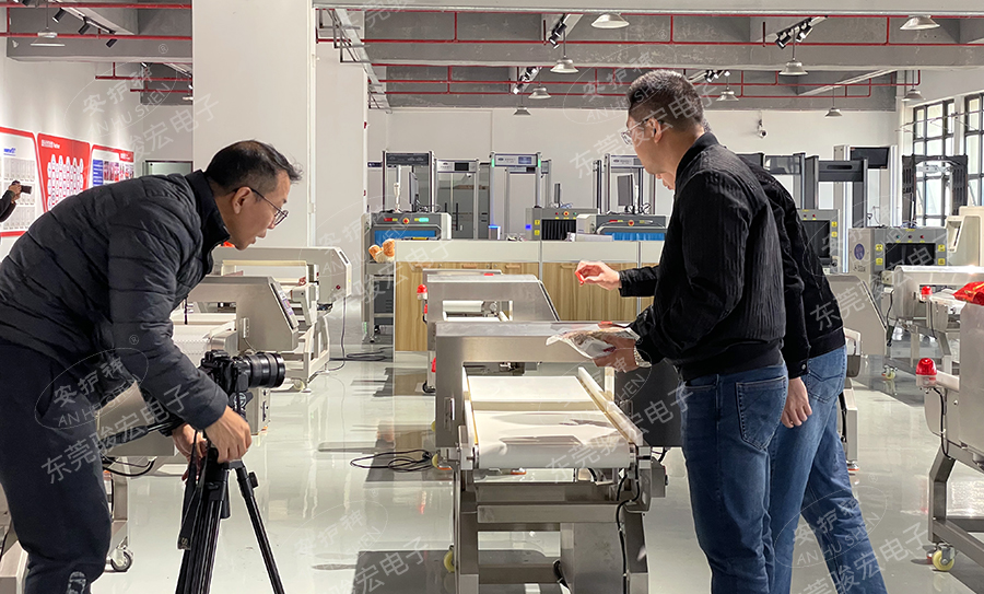為了讓“高靈敏度”、“強(qiáng)抗干擾”等特性更直觀,記者現(xiàn)場出題:將一顆金屬測試塊,放入測試產(chǎn)品里面。當(dāng)測試產(chǎn)品快速通過新一代安護(hù)神食品金檢機(jī)時,設(shè)備瞬間發(fā)出聲光報警,這一“快、準(zhǔn)、穩(wěn)”的演示效果,讓現(xiàn)場攝制組也不禁點頭稱贊。